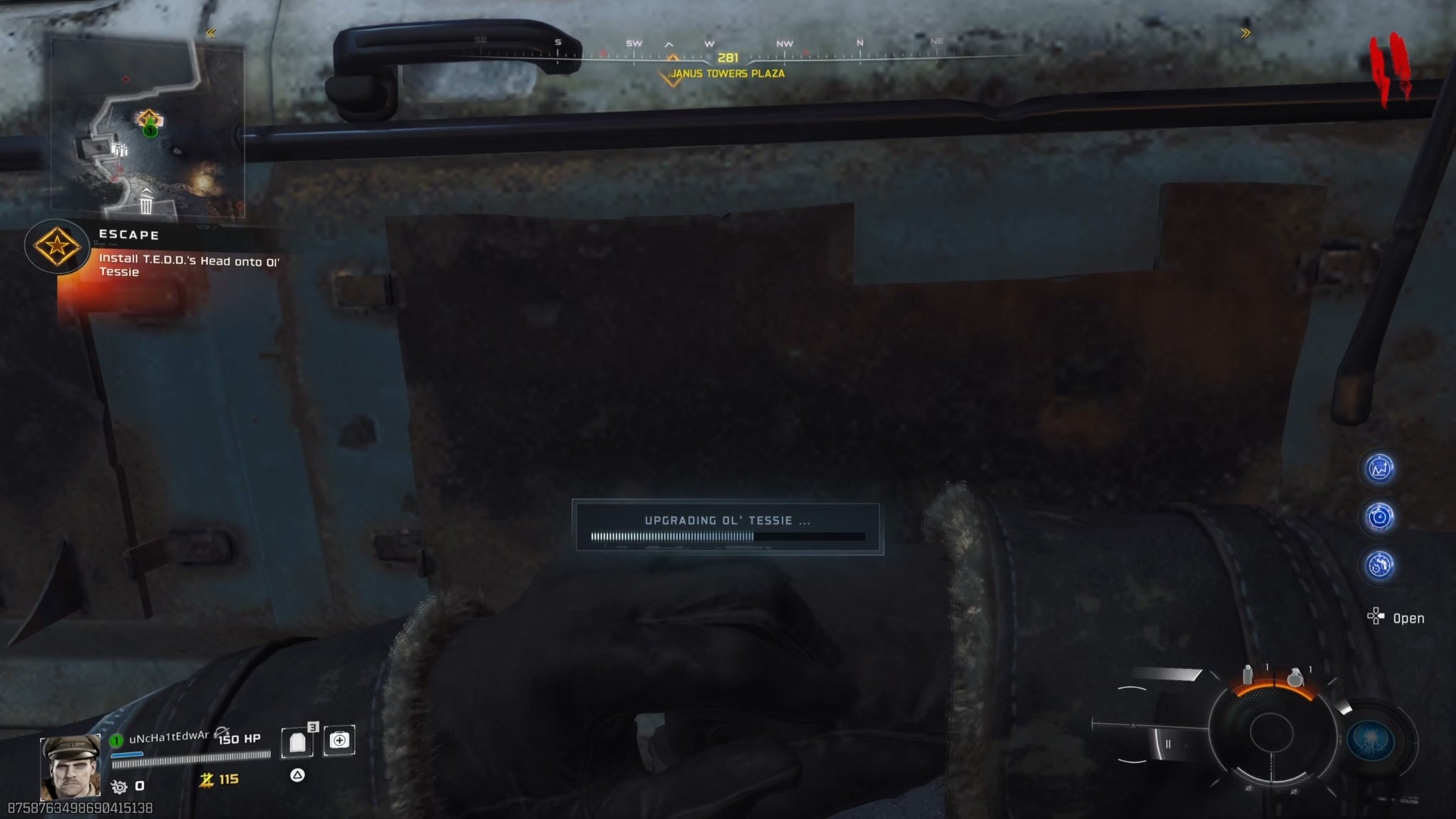 Подойдите к Ol’ Tessie и взаимодействуйте с ней, чтобы установить голову T.E.D.D. в машину, после чего вы будете готовы выехать и свободно передвигаться по карте.