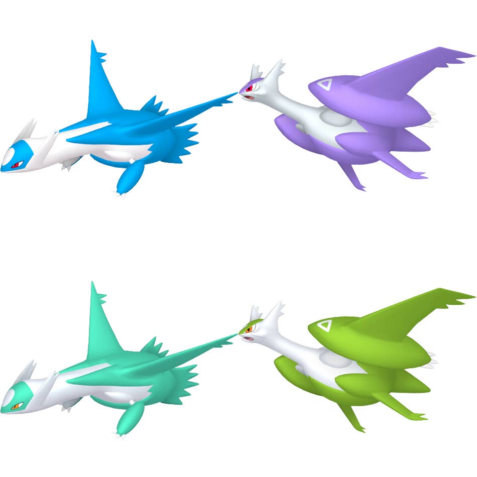 Тем, кто в этом путается (и это понятно), Latias — красный, при шайн-форме становится оранжевым. Latios — синий, при шайн-форме становится зелёным. Оба, к сожалению, становятся пурпурными при Мега-эволюции, а в шайн-версии Мега оба становятся зелёными. Единственное визуальное отличие между мегами — цвет радужки: у Mega Latios радужка красная, у Mega Latias — жёлтая.